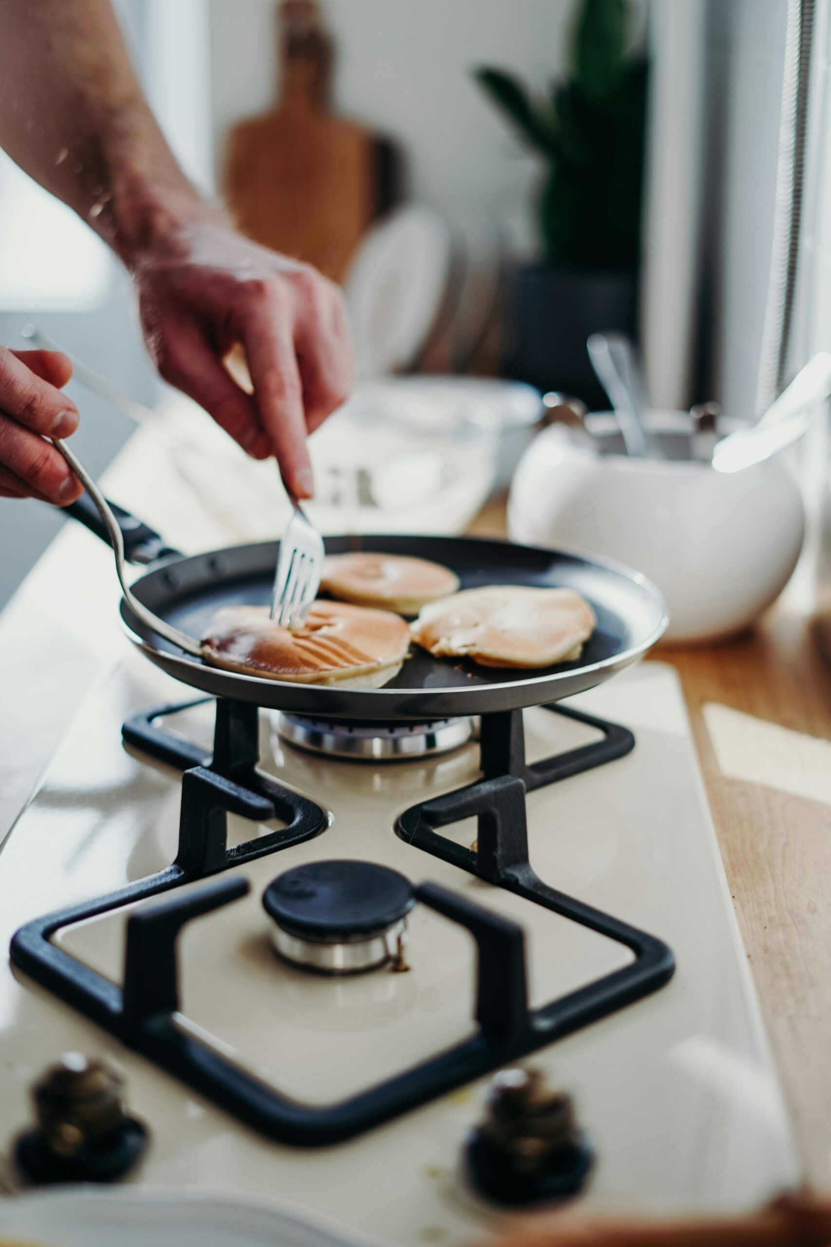 6. Scoop the batter into a 1/4-cup measuring cup and pour onto the pan to make pancakes.