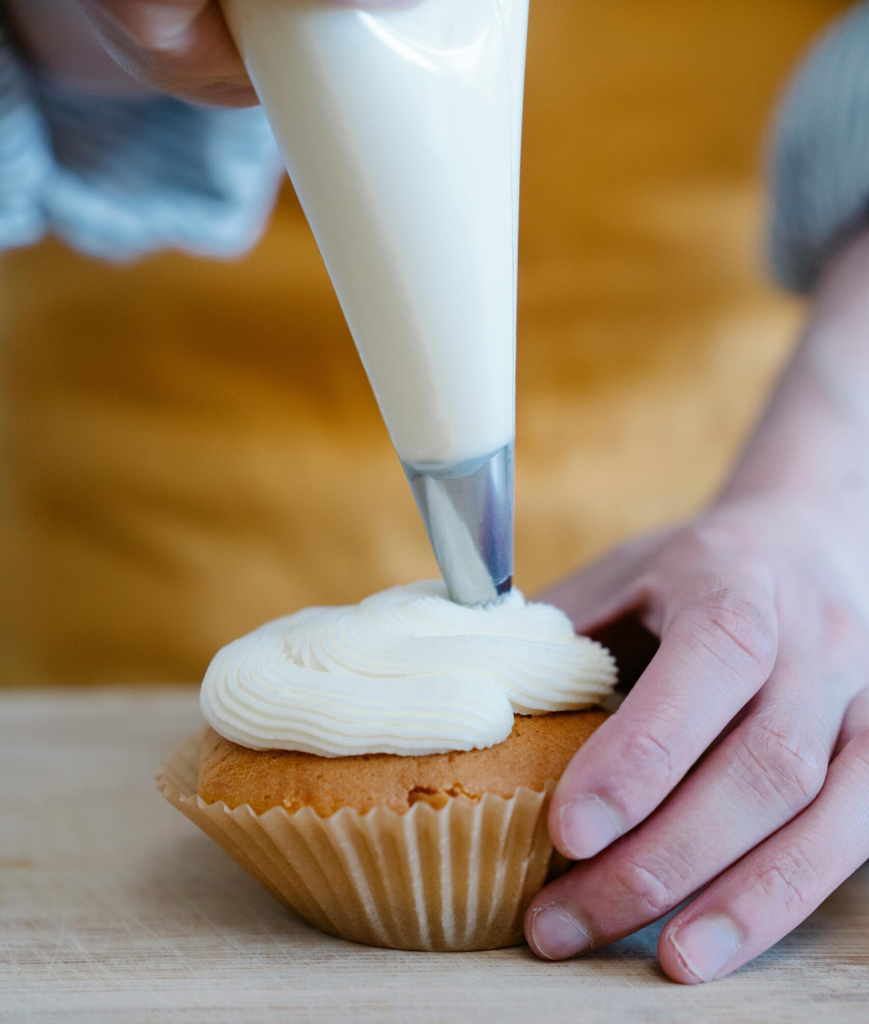 7. Pour the batter into the cupcake cases, filling each one halfway. Bake for 15-18 minutes or until the cupcakes are lightly golden brown and spring back lightly when touched.