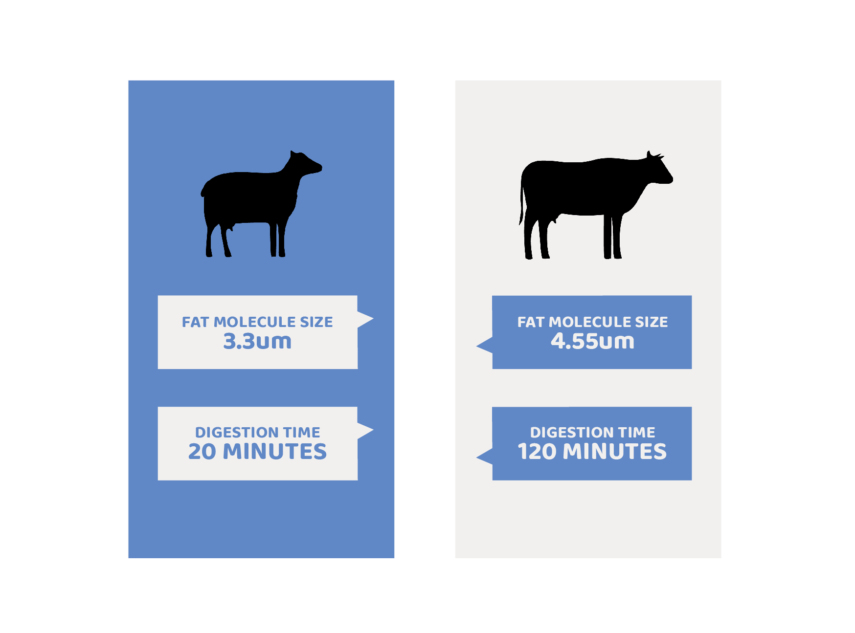 Sheep milk fat molecules have smaller particles than cow milk contains more short-chain and medium-chain fatty acids, which are easier to absorb and digest