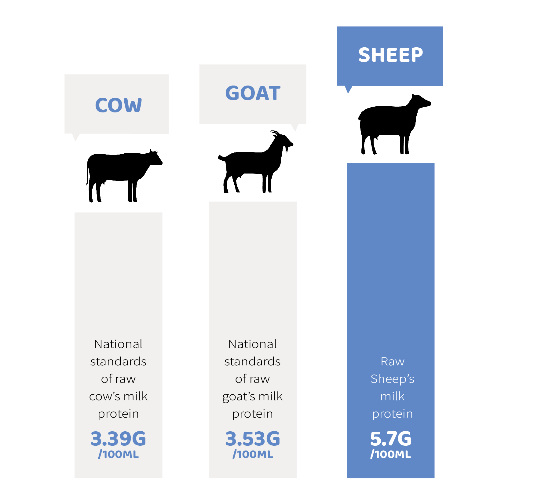 With over double the protein content than cow or goat milk, drinking sheep milk is a great way to help you to get your regular daily allowance in.