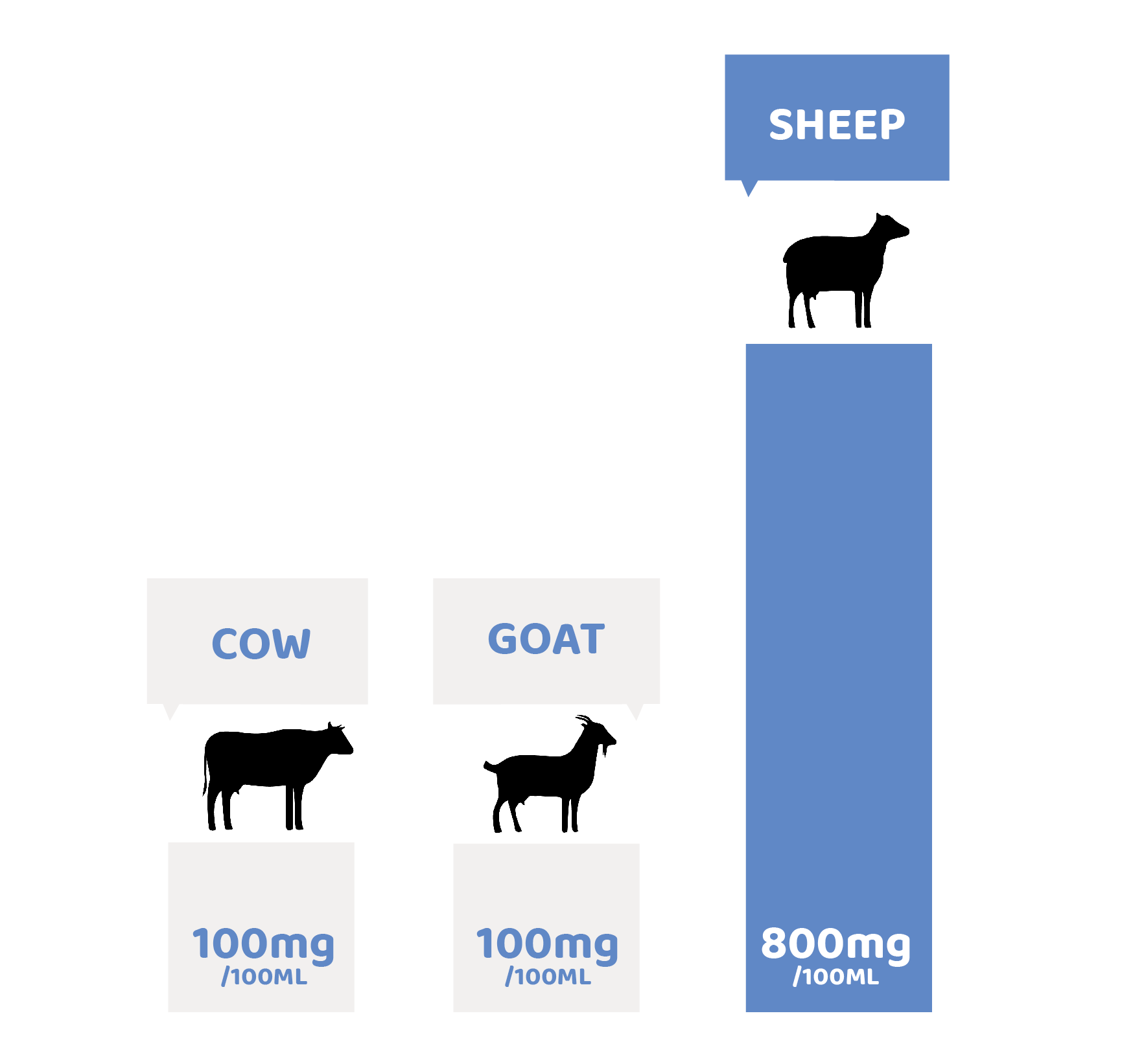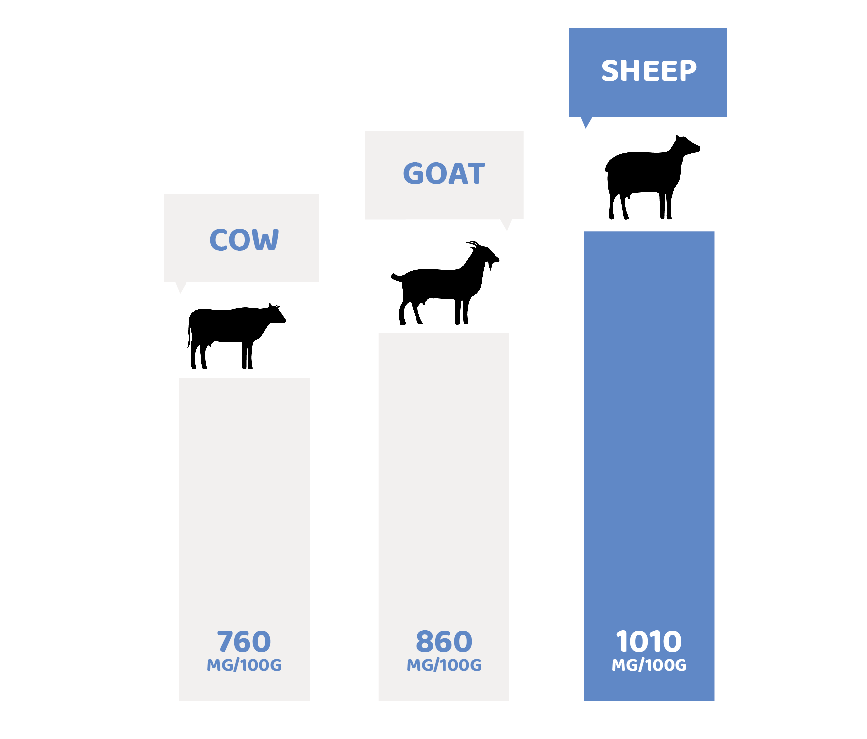 Our sheep milk is rich in B12 and contains 5 times more Folate than goat milk.